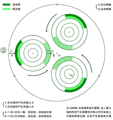 (2) 通過公轉、自轉(同步行星式運動)產生的二維力場,保留兩相中的其中一相作為固定相